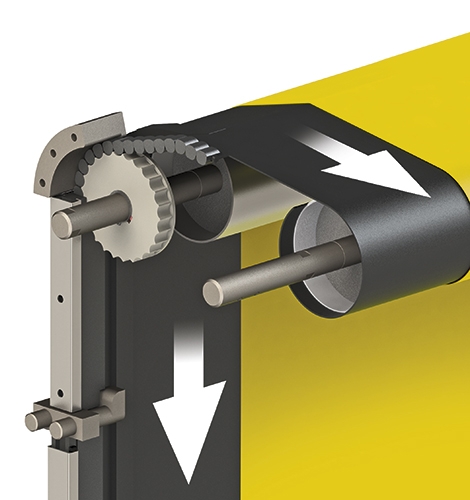 DYNACO靈活的快速卷簾門配備有輕柔的門簾,沒有硬質材料。當門簾(lián)撞到人時,該產品或設備隻是在障礙物周圍交疊,不會造成損壞或傷害。